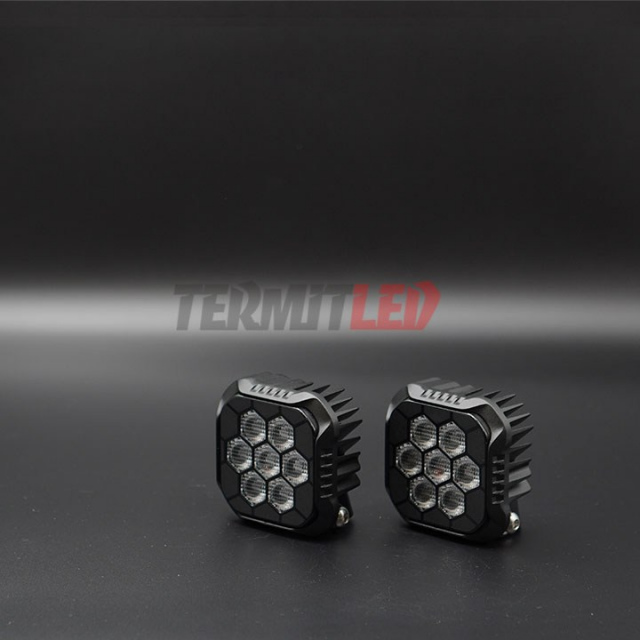 Светодиодные фары Termit серии Extra - это фары в основе которых лежит 2-х или 3-х цветный сверхмощный CSP чипы. Смешанная схема соединения светодиодов в этих чипах, обеспечивает эффективное управление и распределение светового потока. Совместно с полиуретановыми линзами СОВ чипы формируют четкую СТГ.